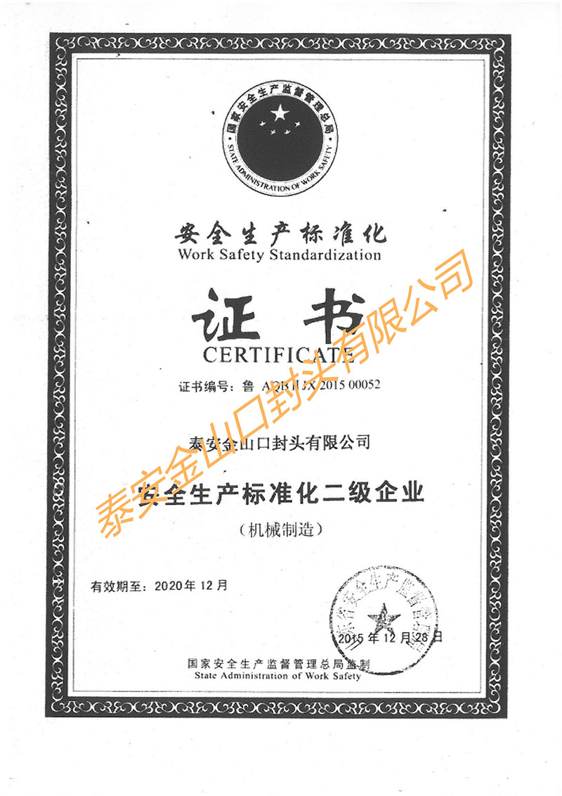 安全生產(chǎn)標(biāo)準(zhǔn)化證書(shū)
