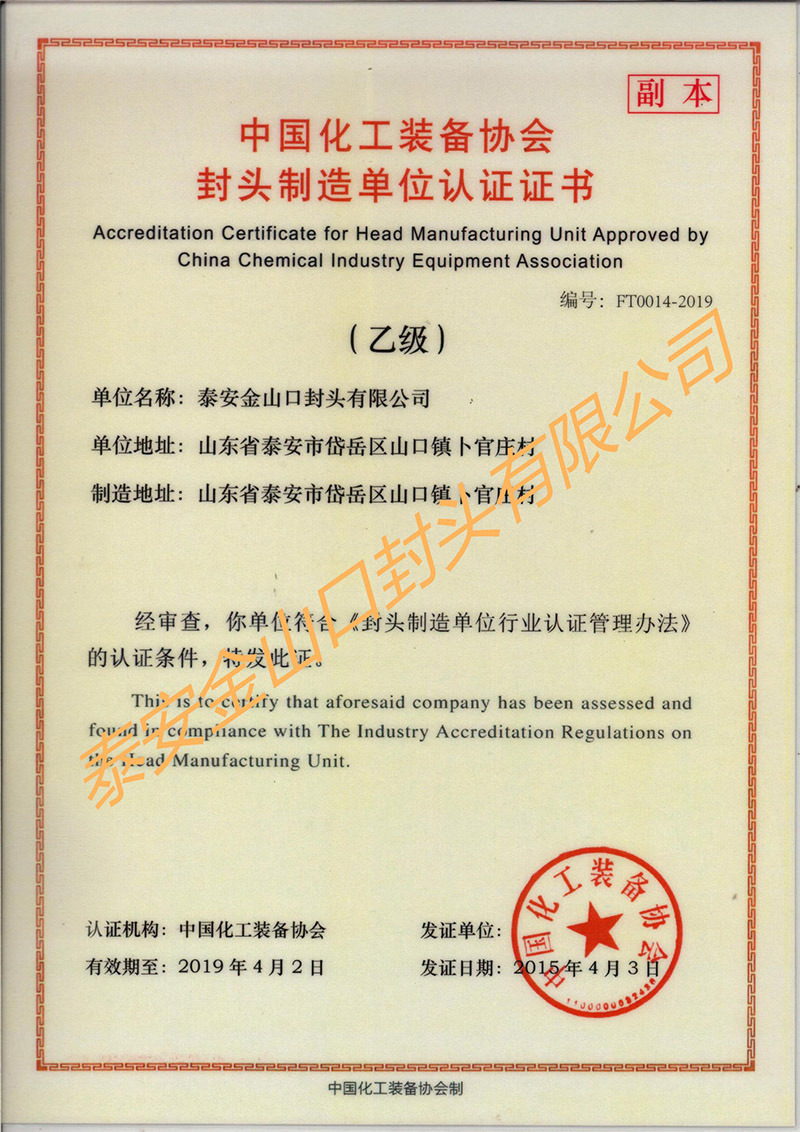 封頭制造單位認(rèn)證證書(shū)